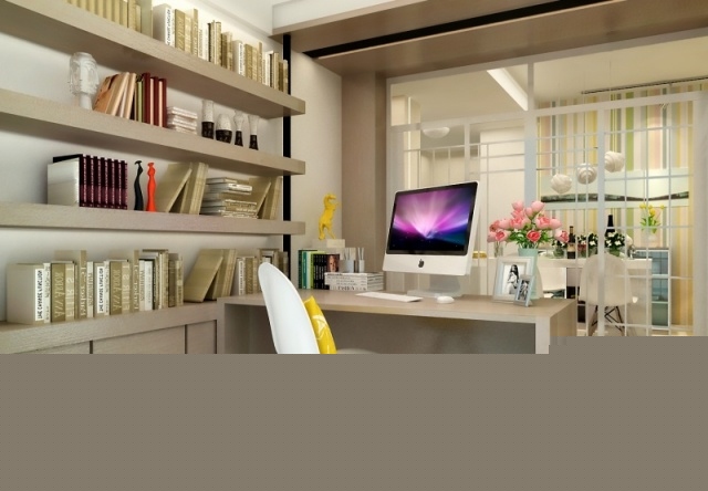 以玻璃介質(zhì)作為間隔,增加了書房的通透性。