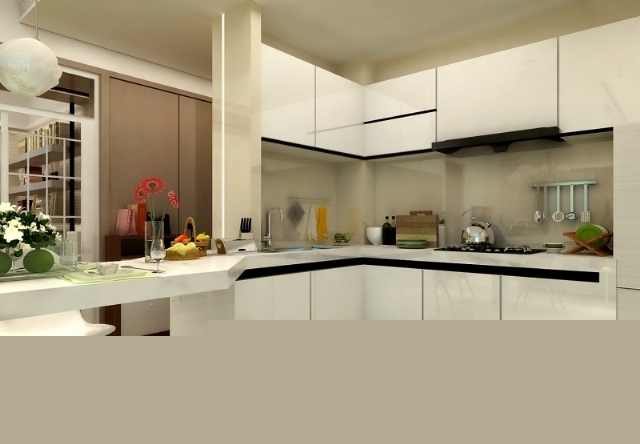 櫥柜延展出吧臺式餐桌,時尚簡約。