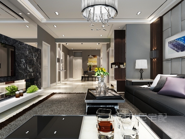 客廳空間與餐廳相連,多運(yùn)用反光材質(zhì),使空間更大