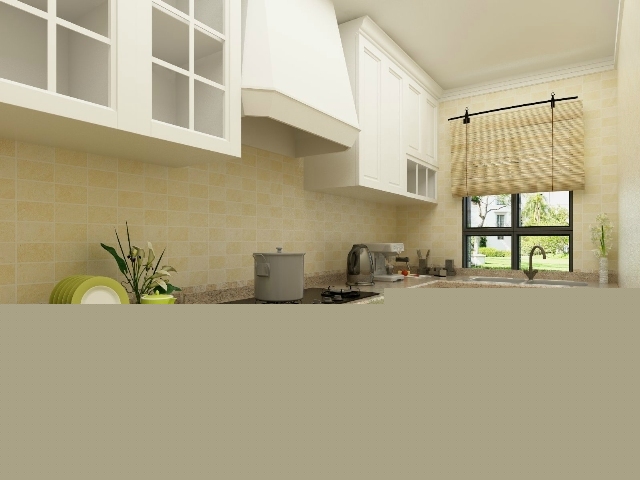 白色的櫥柜,淡黃色的墻磚使小面積的廚房視覺(jué)上顯得更加寬敞。