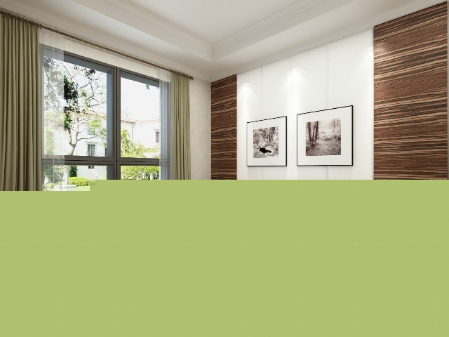 木飾面的造型和床頭巧妙地呼應(yīng),淡綠色的窗簾為整個(gè)臥室增添一絲清新的味道。