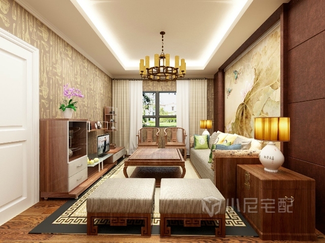 胡桃木的家具讓整個(gè)空間顯得沉穩(wěn)大氣,臺(tái)燈的樣式,茶幾邊幾的造型展現(xiàn)了濃烈的中式風(fēng)格。