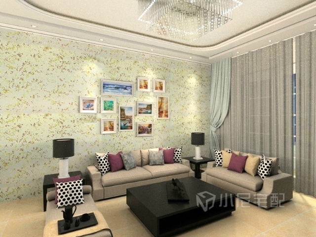 沙發(fā)墻主要也是彩粒漆加照片墻簡單裝飾。