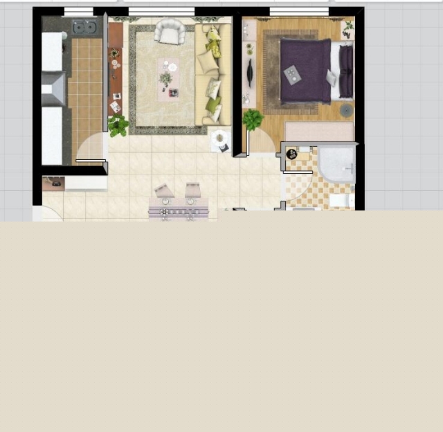 白色的櫥柜,淡藍(lán)色方格墻磚,黃色地磚,彰顯著輕松,隨性的生活態(tài)度