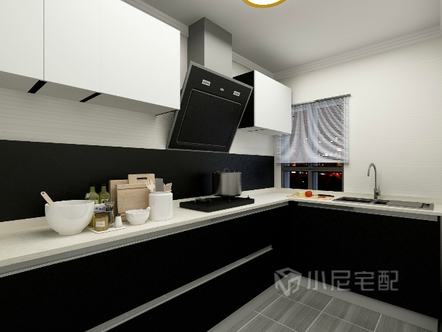 黑白簡(jiǎn)約的櫥柜現(xiàn)代感十足,L型的設(shè)計(jì),功能強(qiáng)大,符合人性化設(shè)計(jì)。