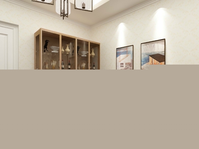 餐桌和酒柜,現(xiàn)代的裝飾畫(huà),打造輕松活潑的就餐環(huán)境。