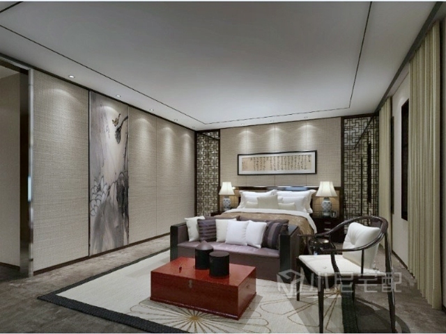 在設計上提煉了中式經(jīng)典元素并加以簡化和豐富,在家具形態(tài)上更加簡潔清秀,同時又打破了傳統(tǒng)中式空間布局中等級、尊卑等文化思想,空間配色上也更為輕松自然。