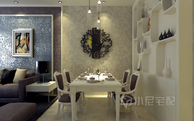 餐廳以簡約為主,白色餐桌,搭配白色的酒柜,趕腳棒棒噠