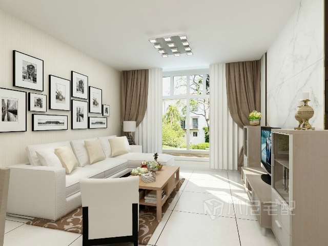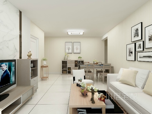 客廳整體采用淺色,彌補(bǔ)客廳朝北采光上的不足。簡(jiǎn)潔明朗的硬裝搭配小尼丹麥暖陽(yáng)系列的電視柜,整體更加大氣、實(shí)用。