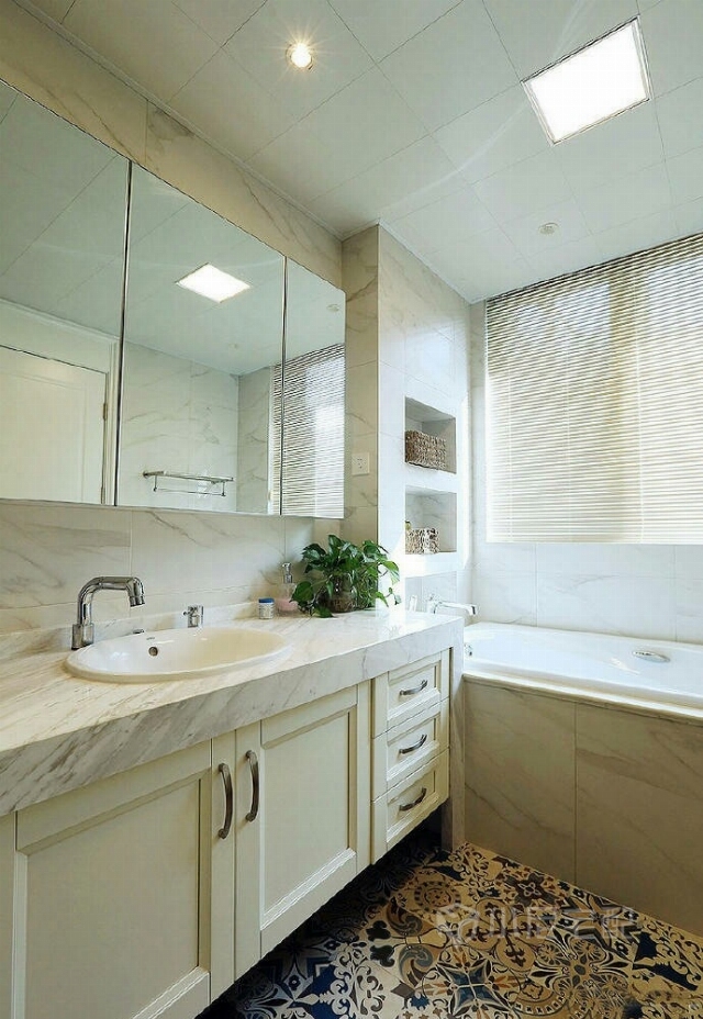衛(wèi)生間的色彩給人一種很舒服的感覺