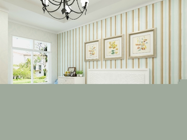 白色的波浪紋的床頭,黃色裝飾畫(huà),淡綠色條紋壁紙,藍(lán)色格子的軟塌,搭配出最舒適的組合。