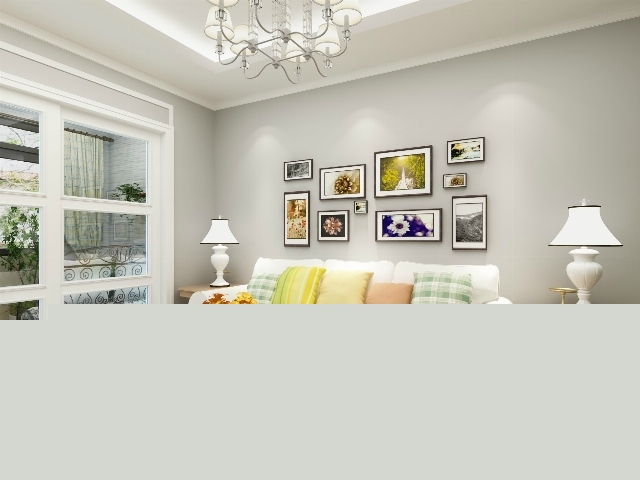 客廳裝修簡單大方,簡單的吊頂,彩色的抱枕,個性的照片墻,在清新之中又多了些大方與時尚。