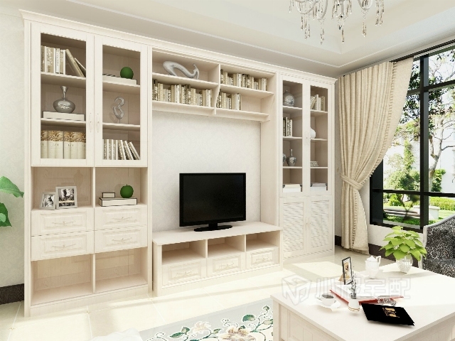 整整一面墻的電視柜組合,節(jié)約空間,利于收納,造型優(yōu)美。