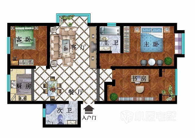 拼花地磚顯得高貴奢華,大大的落地窗讓整個(gè)空間通透明亮。