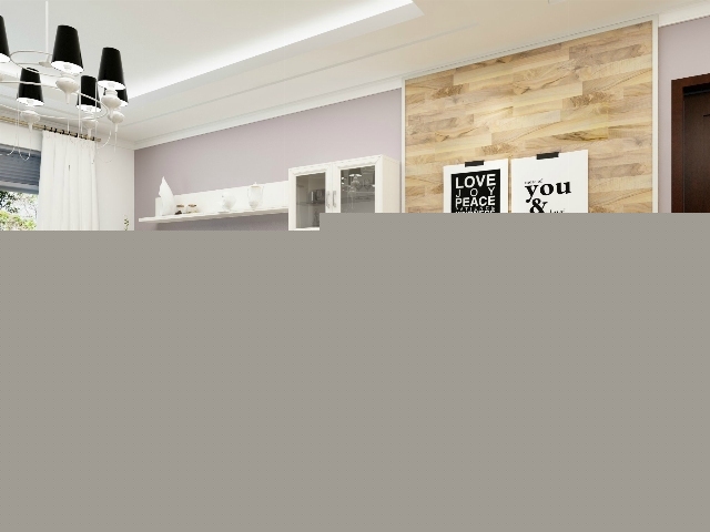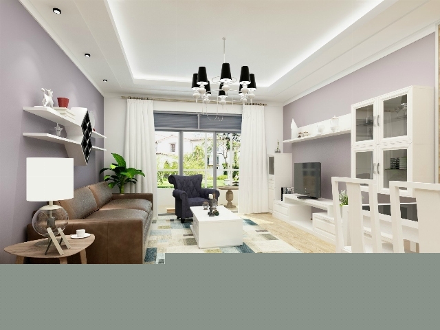 淺紫色的壁紙淡雅恬靜,白色的家具和窗簾提亮整個(gè)空間。