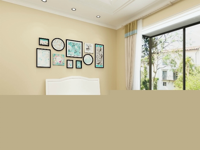 簡約的背景墻,點(diǎn)綴的裝飾畫,沒有復(fù)雜的裝飾,簡潔即是豐富。