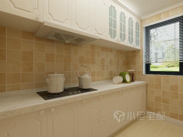 歐式的櫥柜設(shè)計,功能齊全,簡潔明亮。