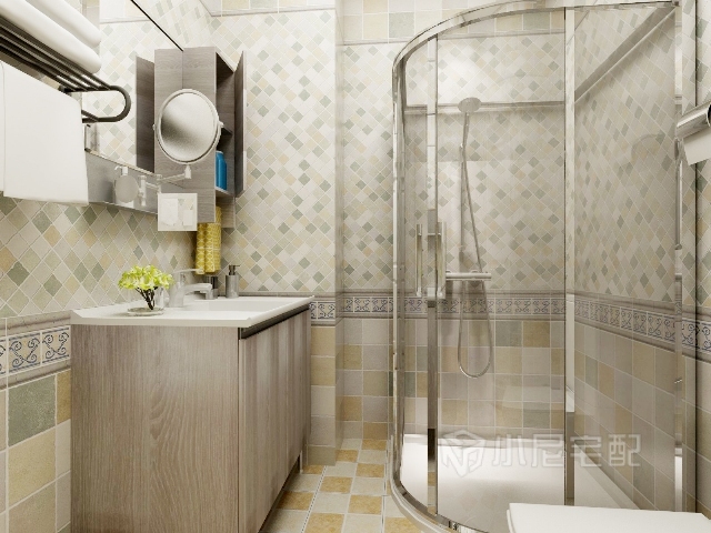 衛(wèi)生間用馬賽克的瓷磚,增加了一些元素