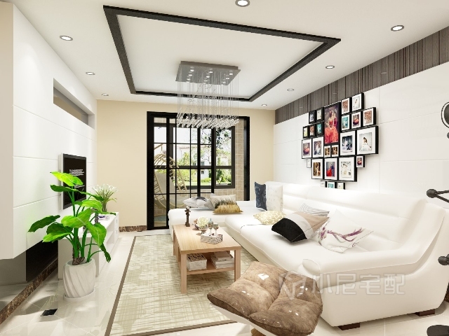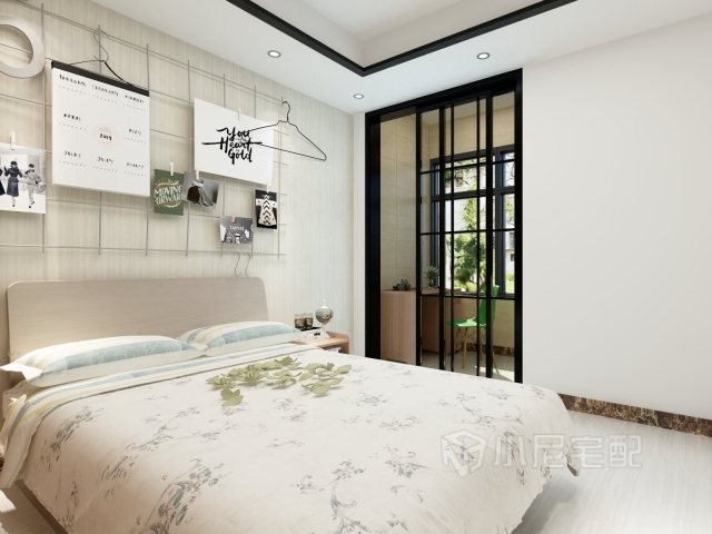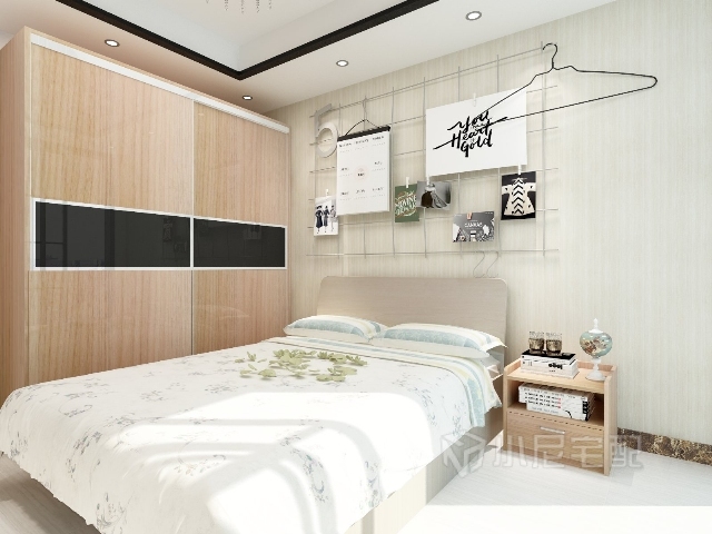 主臥做一個(gè)簡單的吊頂,配上照片墻,既簡單又舒適