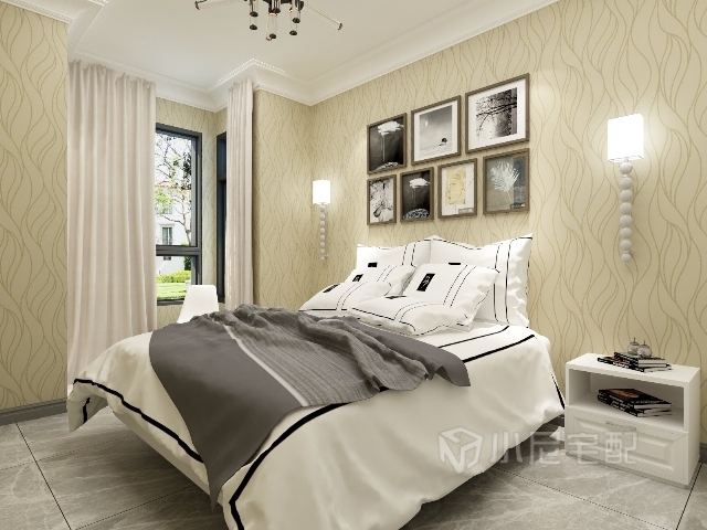 臥室采用黑白條紋墻紙,整個(gè)空間的質(zhì)感提升了起來