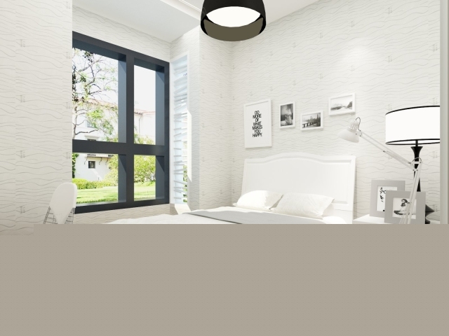 次臥采用了大面積的白色,生活性更多一些