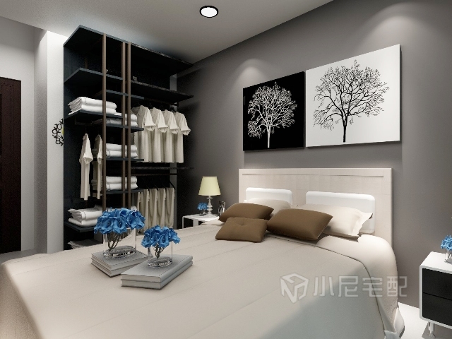 主臥大面的黑白灰對比,整個(gè)空間顯得高大上
