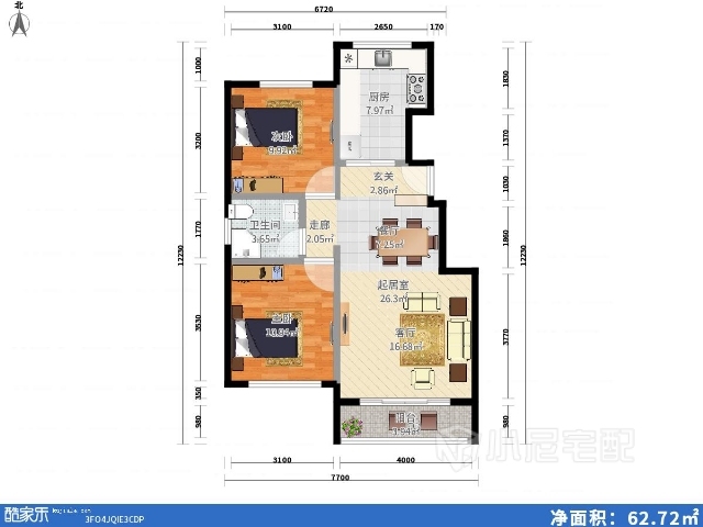 進(jìn)門處用一隔斷做遮擋,增加了私密性