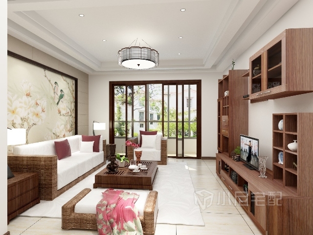 沙發(fā)背景以一幅國畫為背景,沒有瑣碎繁雜的裝飾,顯得非常大氣