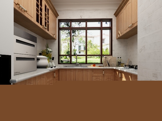 廚房的櫥柜采用吸塑門板做出口線的造型,高端大氣