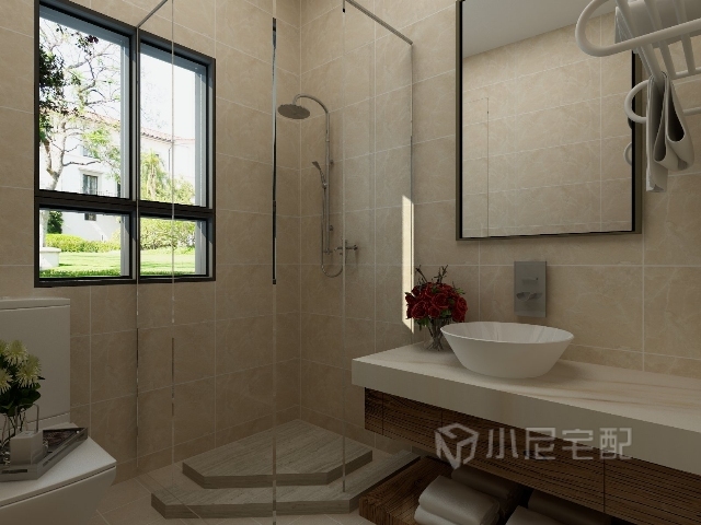 衛(wèi)生間采用了黃色為主調(diào)的設(shè)計,顯得不那么冰冷,很有溫馨感