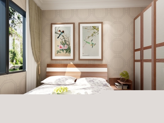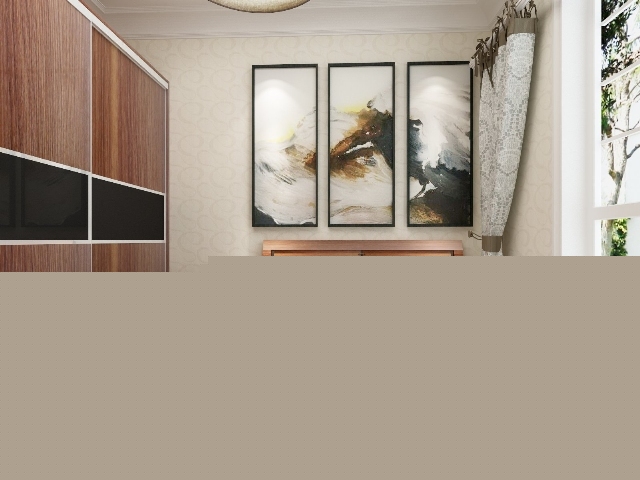 臥室家具采用原木色為主色,白色為套色,有些混搭的藝術(shù)氣息