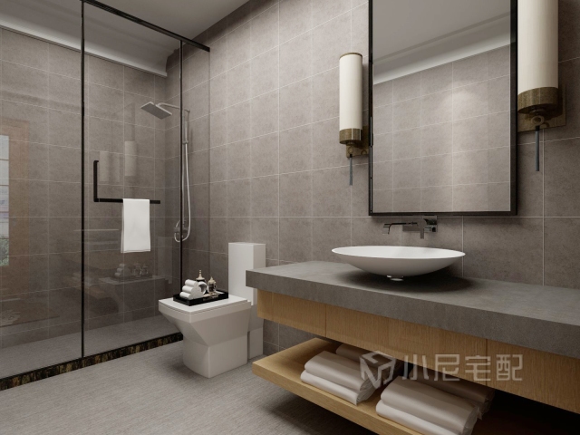 衛(wèi)生間采用了冷色調(diào),高級灰