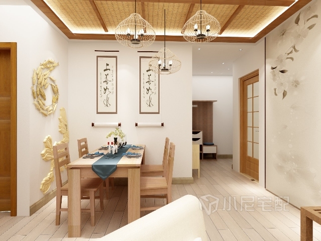 整個設(shè)計是日式風格,由于傳統(tǒng)的原因,家具講究比較低矮,自然