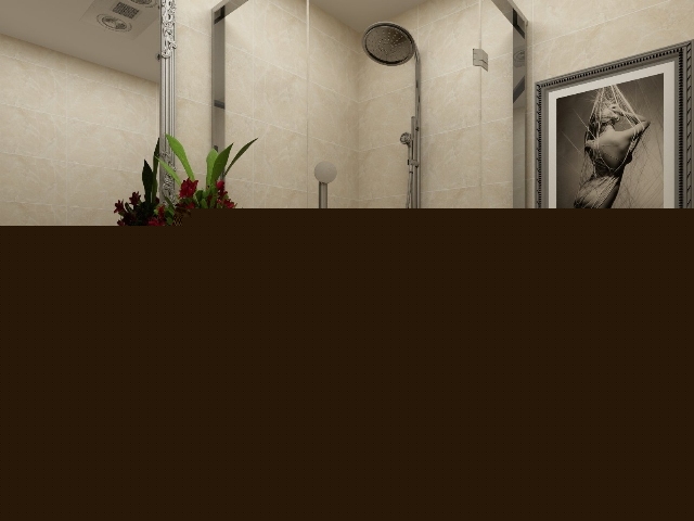 衛(wèi)生間上墻下墻腰線劃分了空間的層次