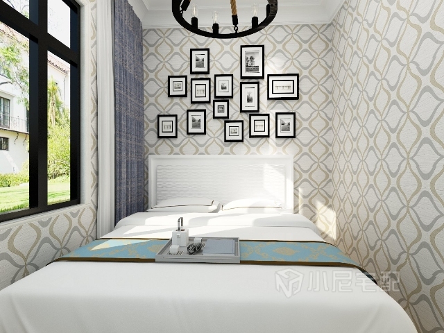 次臥的小空間配上淺色的壁紙,富有層次,又不顯得狹窄