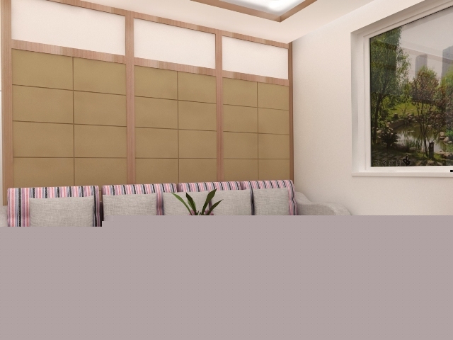 沙發(fā)背景墻用軟包和木質(zhì)混合,軟硬搭配