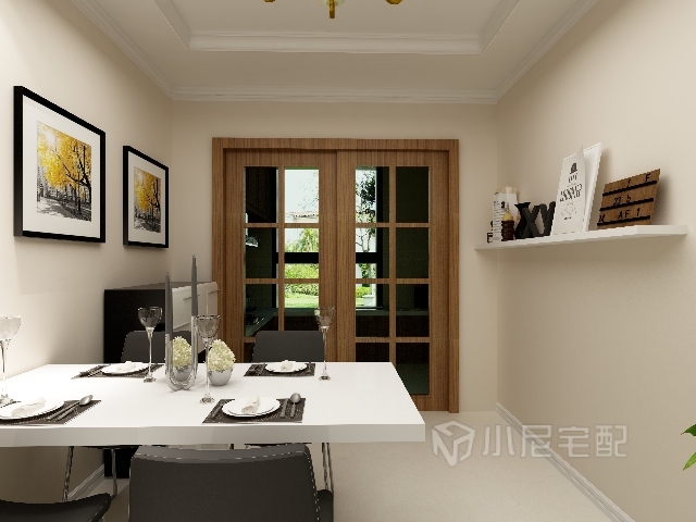 簡單實用的餐廳,餐邊擱板即可儲物又美觀,使人覺得賞心悅目