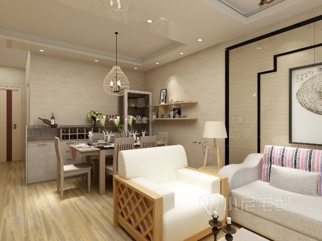客廳和餐廳有一個(gè)隱形的劃分區(qū)域的設(shè)計(jì)