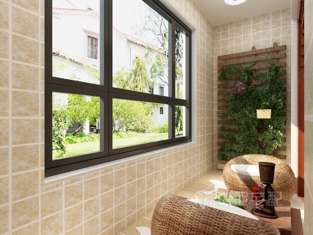 陽臺布置兩個休閑沙發(fā),供閑暇時的娛樂