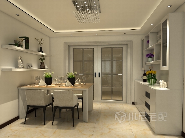 走廊的吊頂采用兩邊的燈槽設(shè)計,使餐廳和客廳更有連接性.