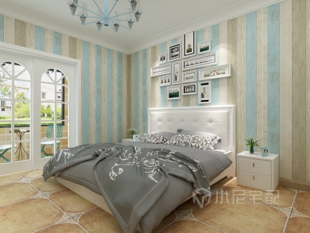 臥室整條壁紙,用壁紙的紋理增加空間的層次感