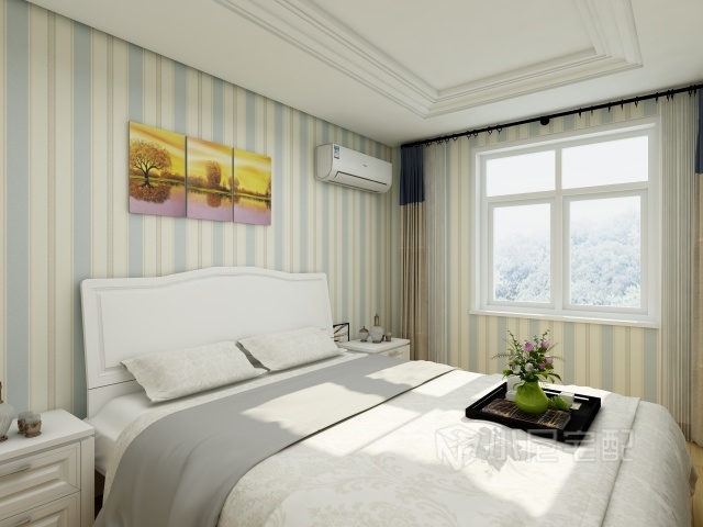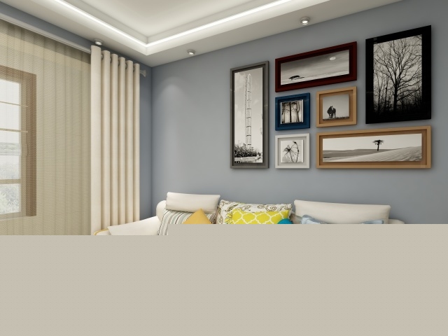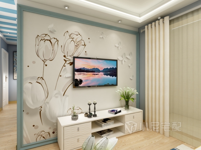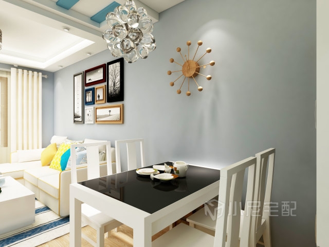 客廳空間的顏色比較偏清新藍(lán),干凈敞亮。
