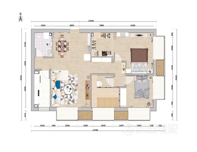 方案整體風(fēng)格趨向于簡約風(fēng)格,戶型采光較好,大面積灰色并不會(huì)另空間壓抑,配合白色踢腳線、木地板和原木色家具,使整個(gè)空間能更好的展現(xiàn);原是三室一廳兩衛(wèi)的戶型,為滿足業(yè)主對(duì)于衣帽間的需要,將主臥內(nèi)的衛(wèi)生間改造成衣帽間;原戶型內(nèi)過道很寬,占用了很大的空間,后將隔墻拆改,占用一部分衣帽間的空間,使過道一側(cè)留出內(nèi)嵌展示柜的深度,弱化3米多長的過道。