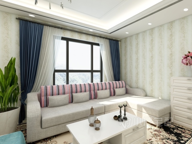 布藝沙發(fā)溫馨舒適,米色沙發(fā)搭配彩色條紋,活潑清新。