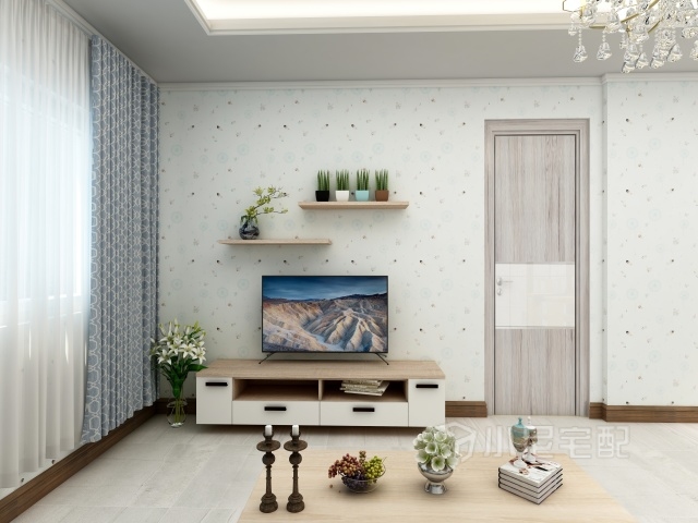電視背景墻簡約時尚,搭配綠色的植物使整個空間充滿生機