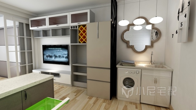 陽臺(tái)充分體現(xiàn)空間感,折疊梳妝臺(tái)和抽拉小凳??臻g百變利用