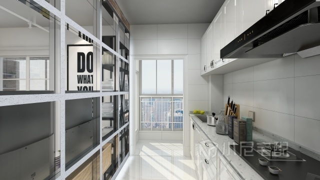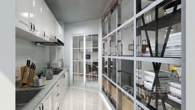 廚房陽臺位置增加了洗衣機來緩解空間小放不下大型電器的尷尬