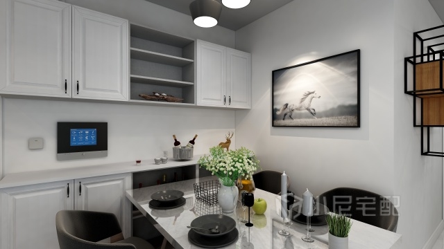 餐廳的位置不叫小沒有做過多造型只是加了一組餐邊柜。