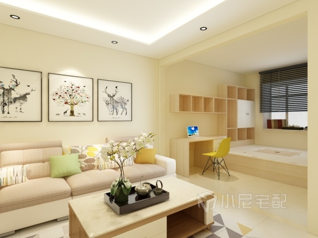 簡單自然,整體采用原木色白蠟?zāi)緸橹饕{(diào)配合米黃色墻體,營造一個原生態(tài)的自然之家。