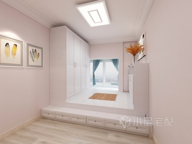 次臥榻榻米連著陽臺。衣柜,書柜,升降機,收納空間充足,同時也是休閑喝茶的好地。